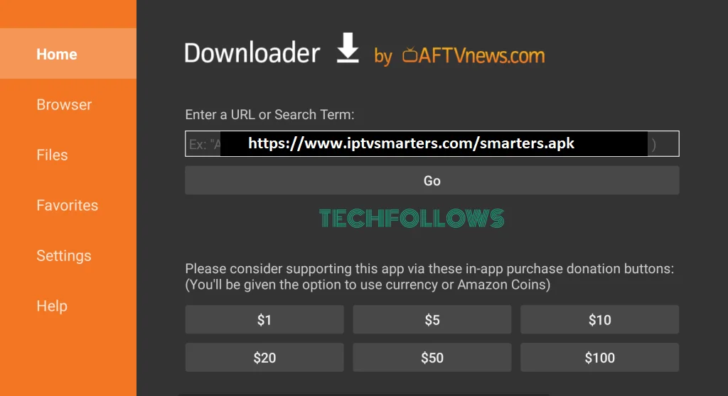 16. Type the following URL exactly as shown here: https://www.iptvsmarters.com/smarters.apk